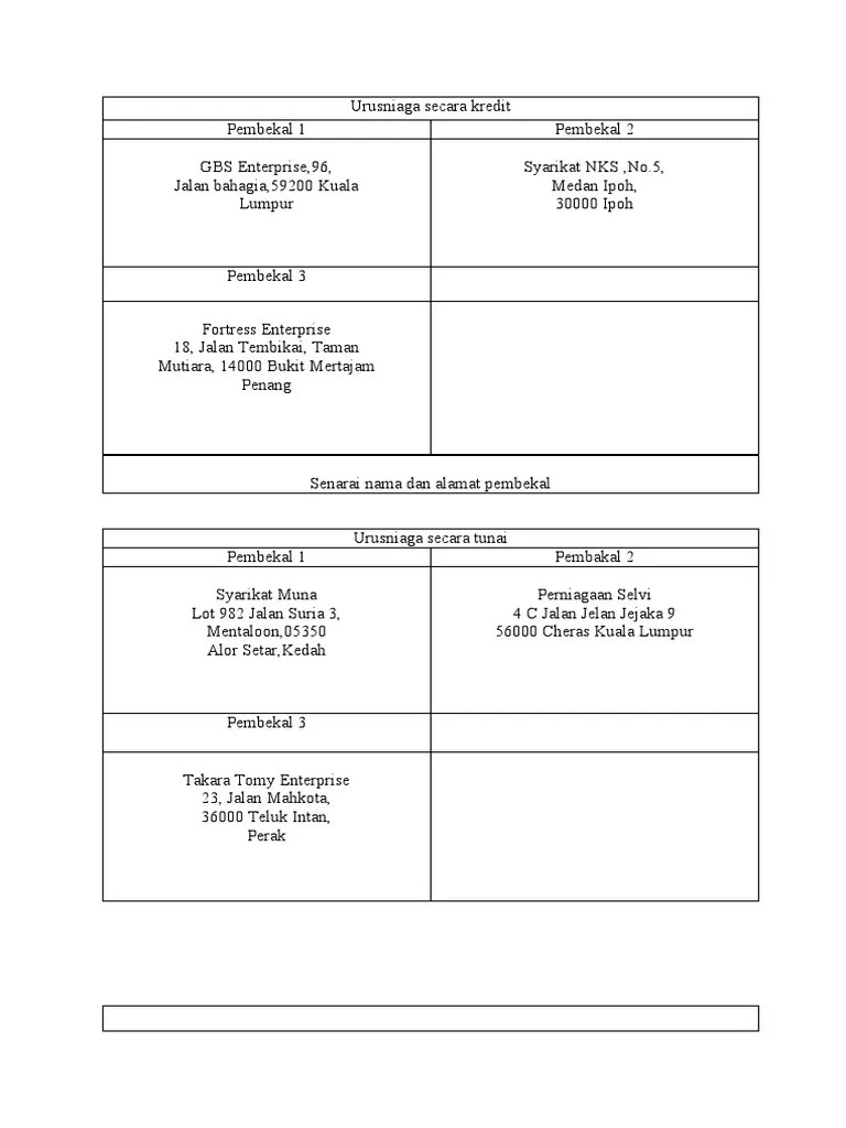 Ok ini dia link alamat. Contoh nama syarikat dan alamat. Salam.boleh x.bg contoh no pendaftaran perkongsian perniagaan kanopi. Contoh syarikat sdn bhd, berhad, & enterprise. Senarai daftar kontraktor gred g2 tahun 2019 nama syarikat id cidb alamat berdaftar nama pemilik. Makanan sejuk beku, membuat kek,. Adakah premis ini mempunyai lesen perniagaan mbpj? Chepa 2, 16100 kota bharu, kelantan. Cara daftar sdn bhd online. Jalan 6/44, kawasan perindustrian pengkalan. Sebelum mendaftar, anda perlu mencari alamat pejabat ssm. Anda hanya perlu isikan alamat kediaman sahaja. Jenis perniagaan yang dijalankan (contoh: